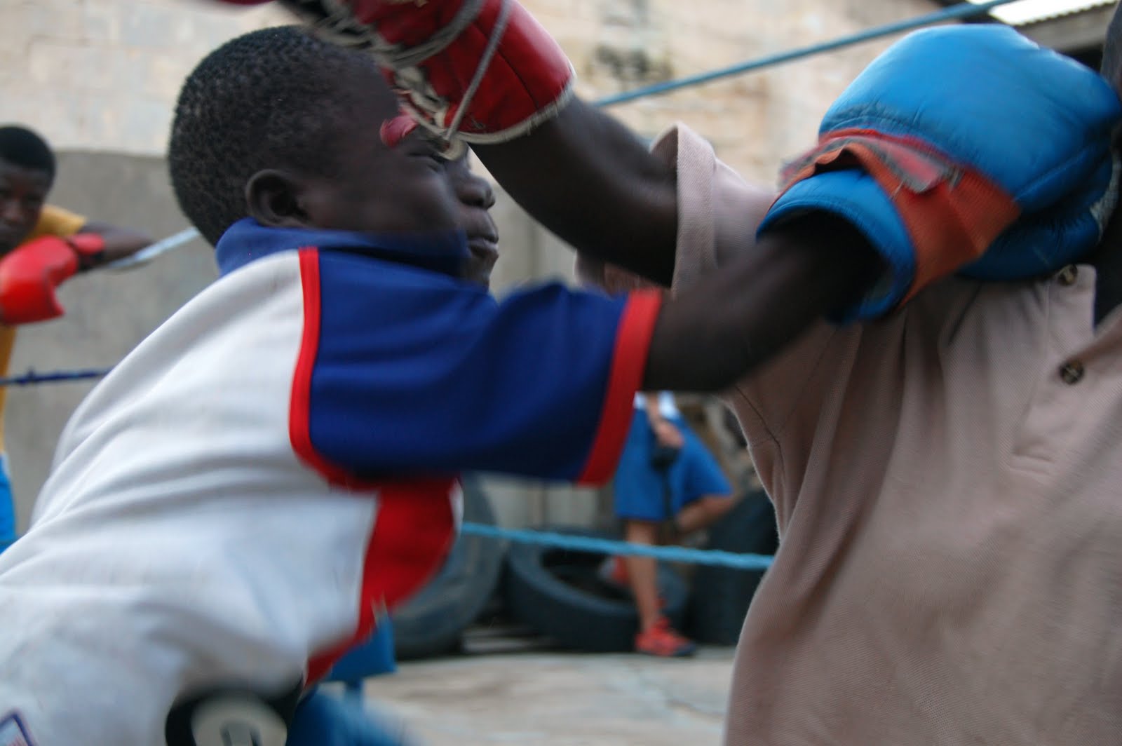 When we got to the gym, there were a lot of other guys and children setting things up and getting everything ready for the training. Like when we first met James, it was a little bit intimidating at first, because you could sense the others sizing us up and trying to decide if they minded that we were there or not. After a little while, though, everyone completely warmed up to us, and we ended up having the most amazing experience. James, another younger boxer named Henry, and a few of the other guys, all started an intense workout. The gym is outside, and basically just consists of one ring and two hanging boxing bags, but they definitely don't let that keep them from working incredibly hard. While the older men were training (the younger boys, some as young as 6 years old) were also going through a different kind of training. They were being taught how to stand and then later on a few of the boys sparred in the ring. Even though they were fooling around half the time, you could tell there was a certain maturity to the boys and they seemed to take what they were learning very seriously, and you can tell they look up to people like James and Henry so much. But I was so impressed at how respectful and mature they were even in the ring. The one little boy got the area above his eyebrow gashed open, and he was completely nonchalant about it.